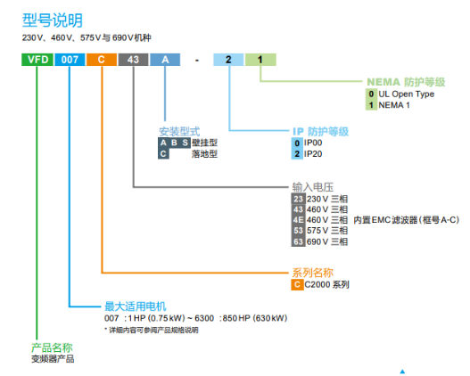 | 575Vac,3 相,轻载条件下,适用电机功率 1.5~15kw(2~20 HP) | ||||||||||||||||