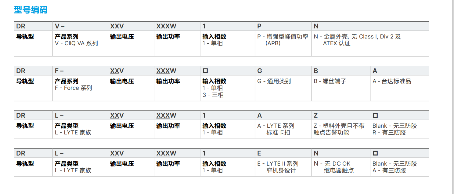 | 输出 | DRF-24V120W3GBA | DRF-24V240W3GBA | DRF-24V480W3GBA | DRF-24V960W3GBA | |
