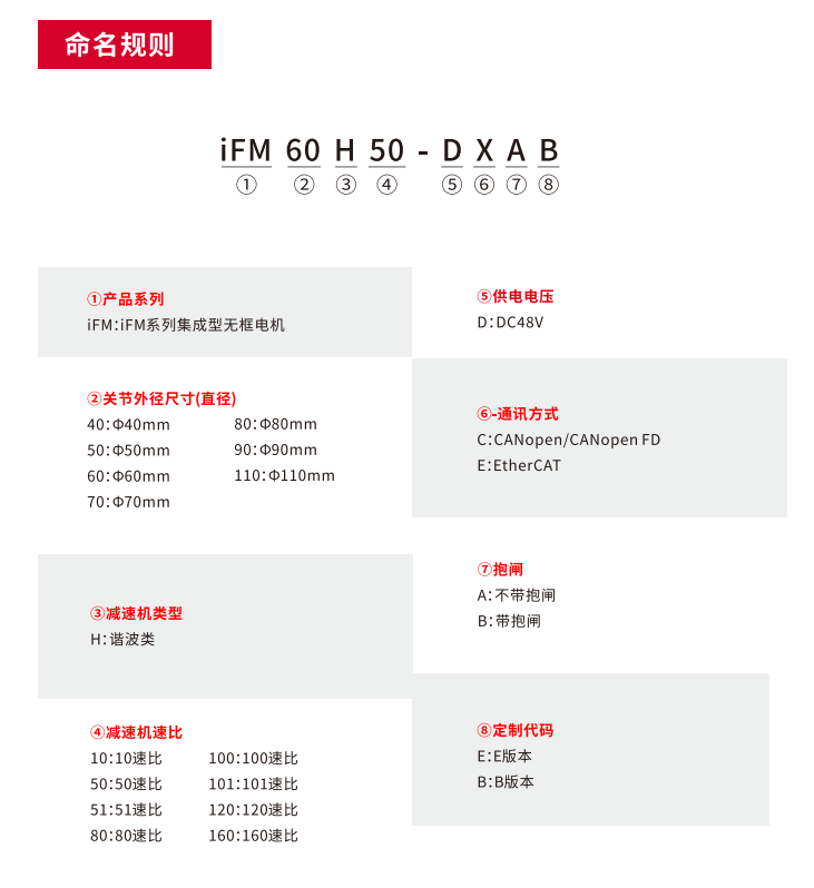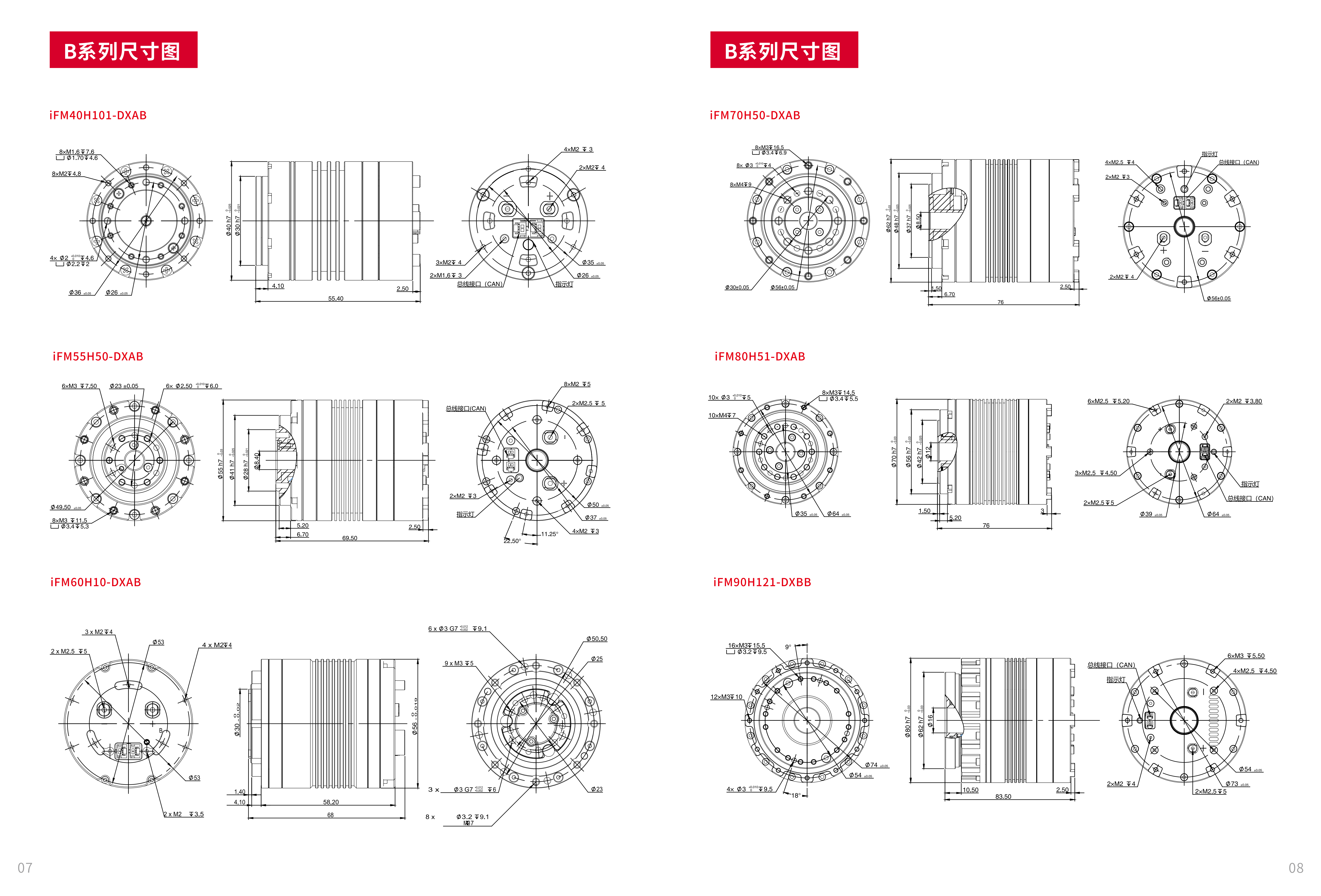 为响应客户对核心关节部件的更多需求,步科现推出旋转关节模组-iFM系列采用步科主推无框力矩电机作为动力心脏,与知名谐波减速机厂家做配套,设计精巧、结构紧凑,小巧体积中包含伺服驱动器、电机端绝对值编码器、输出端绝对值编码器、无框力矩电机、制动器、精密谐波减速机等主要部件为客户省去上百种机械电子器件选型、设计、采购、组装的人力和时间成本。