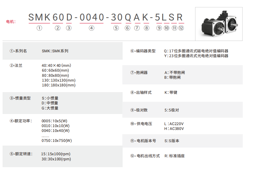 | 伺服电机型号 | SMK60D-0020 -30□■K-5LSR |