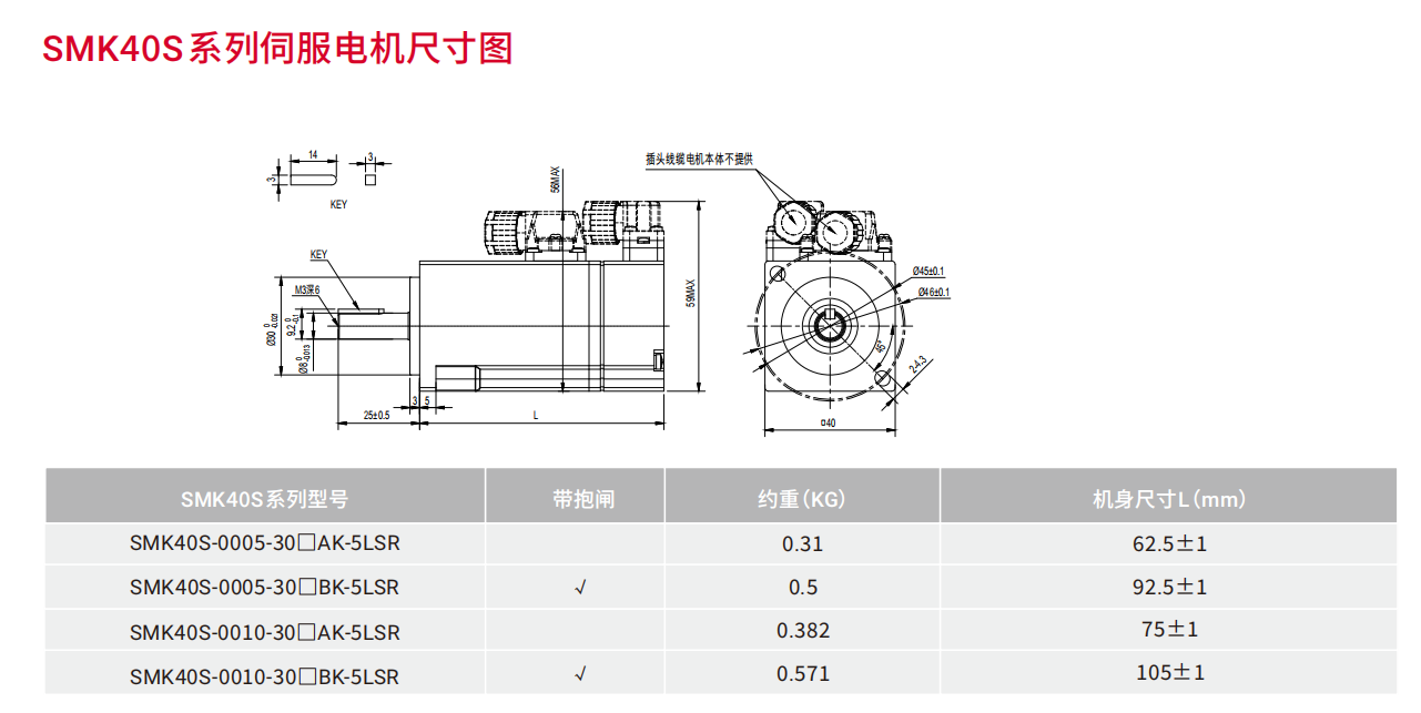| 伺服电机型号 | SMK40S-0005 -30□■K-5LSR |