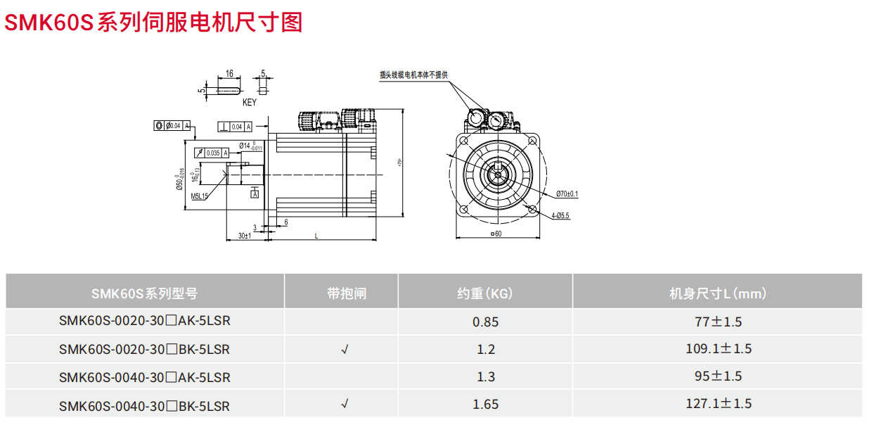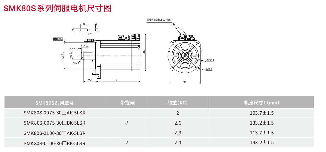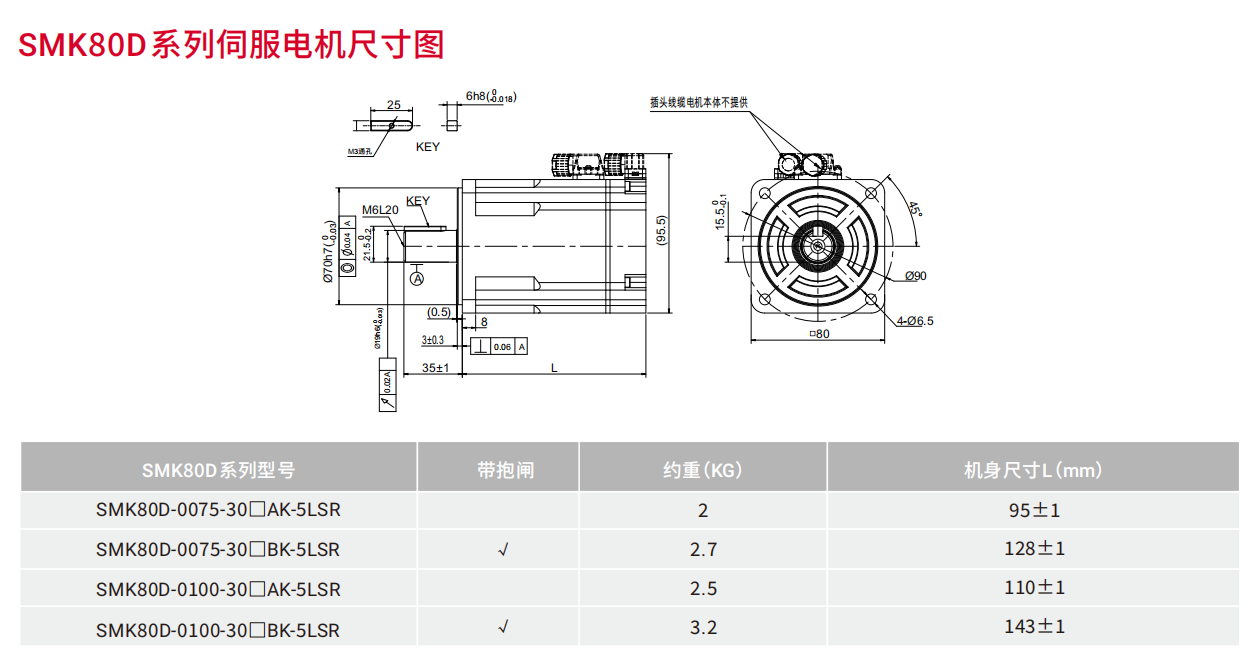 | SMK伺服电机技术参数 | |||||||