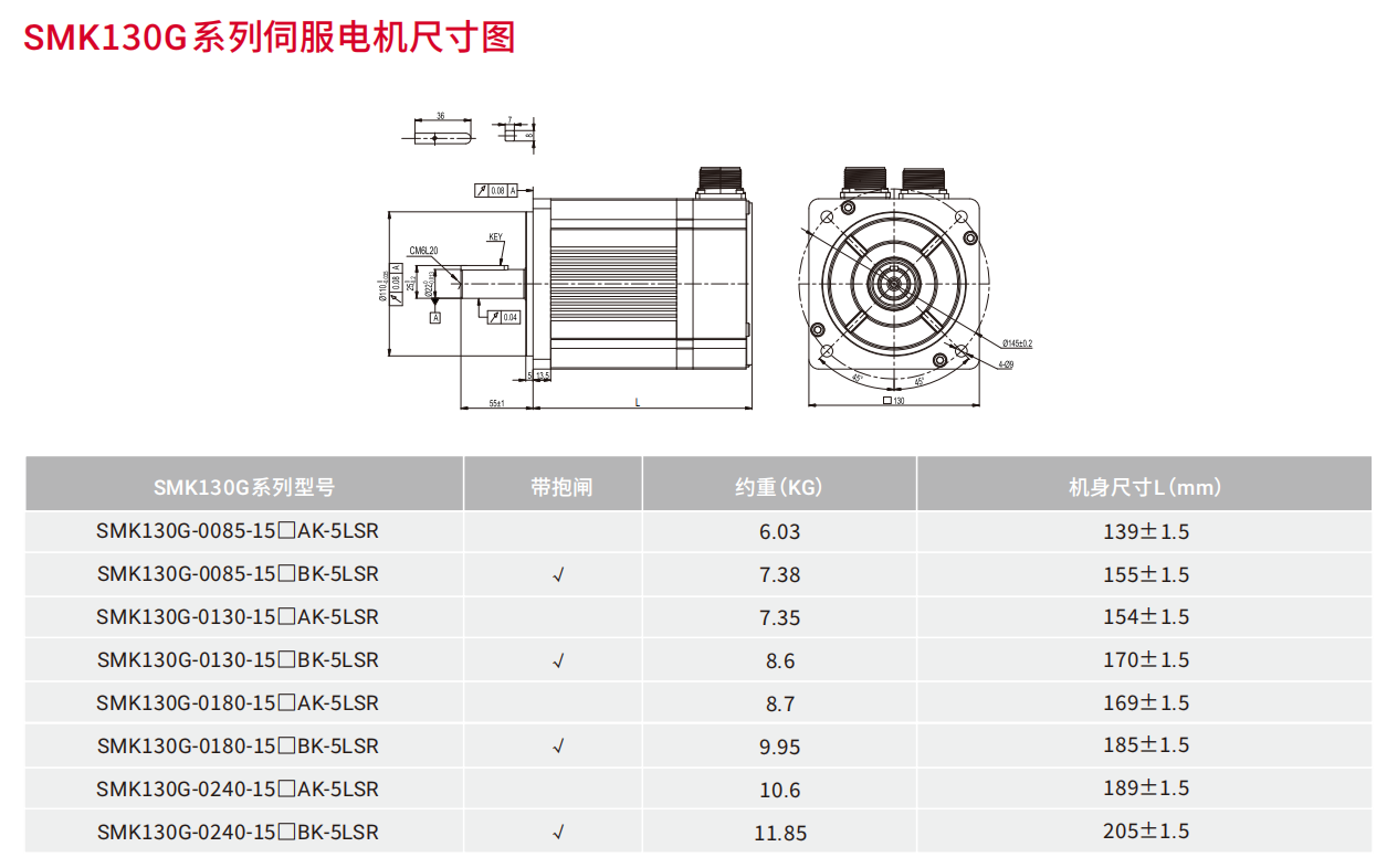 | 伺服电机型号 | SMK130G-0085 -15□■K-5LSR |