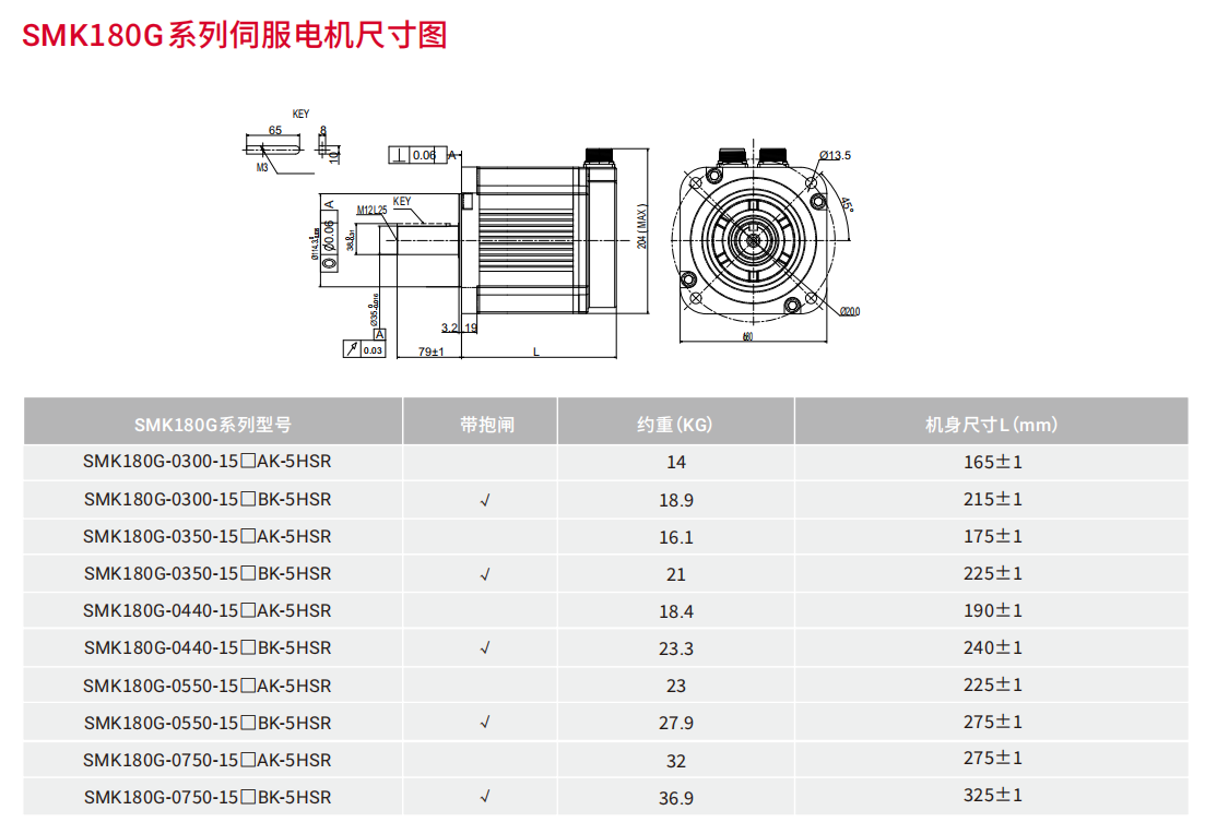 | 伺服电机型号 | SMK180G-0300 -15□■K-5HSR |